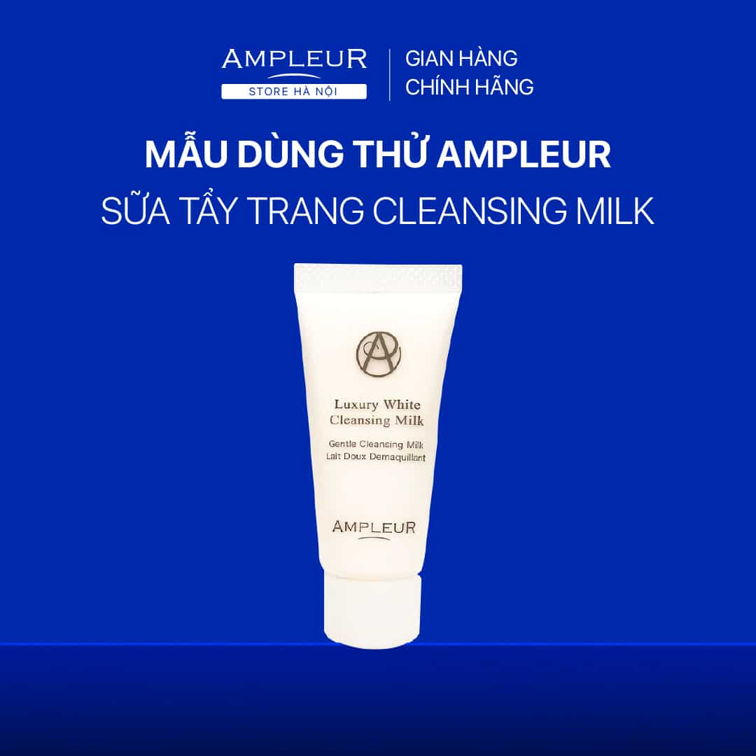 Sữa tẩy trang Ampleur Luxury White Cleansing Milk N dịu nhẹ, nhũ hóa nhanh, làm sạch sâu makeup, bụi bẩn và tế bào chết, dưỡng trắng, mờ thâm nám với Hydroquinone ổn định, cấp ẩm sâu bằng ceramide, collagen và chiết xuất nhau thai, bảo vệ da khỏi ô nhiễm, mang lại làn da mềm mịn, căng bóng.